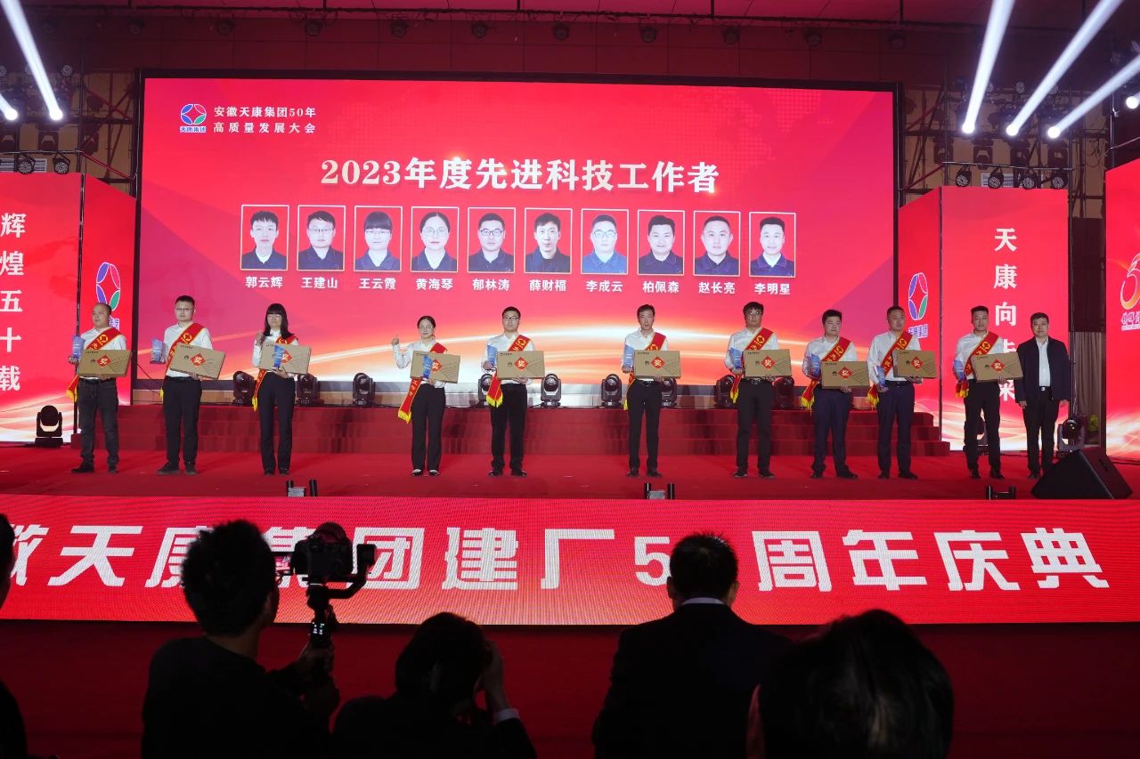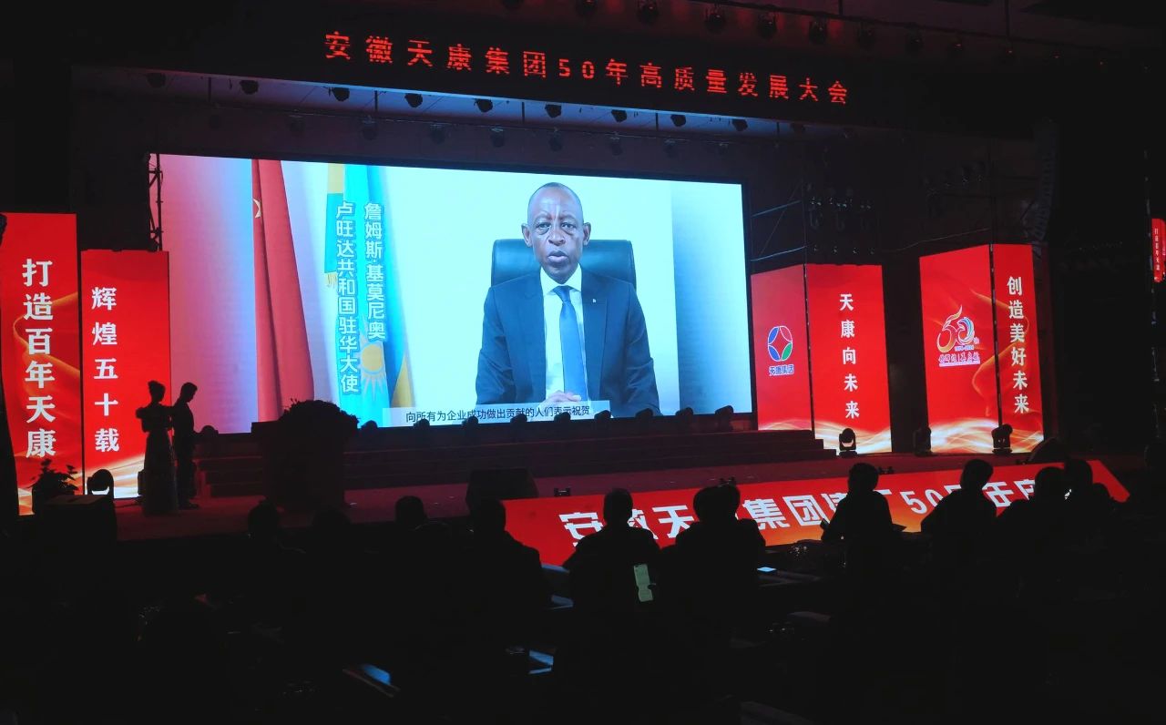 會(huì)議宣讀并展示了來(lái)自全國(guó)各地近百封賀信和祝賀視頻,同時(shí)展示了安徽天康集團(tuán)50年來(lái)的重大科技成果。