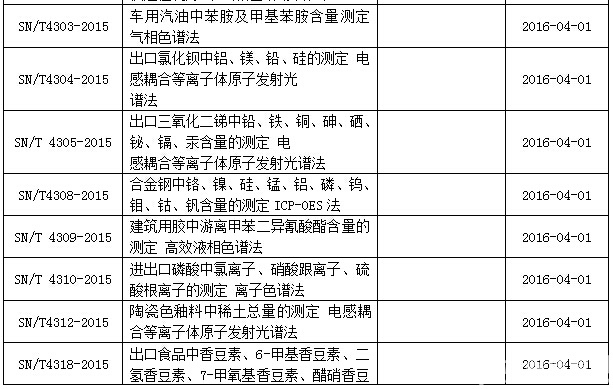 9月2日,質(zhì)檢總局發(fā)布關(guān)于2015年第三批103項(xiàng)出入境檢驗(yàn)檢疫行業(yè)標(biāo)準(zhǔn)的通知,其中20余項(xiàng)涉及色譜、質(zhì)譜及光譜儀器檢測(cè)方法,被代替標(biāo)準(zhǔn)自本批標(biāo)準(zhǔn)實(shí)施之日起廢止。