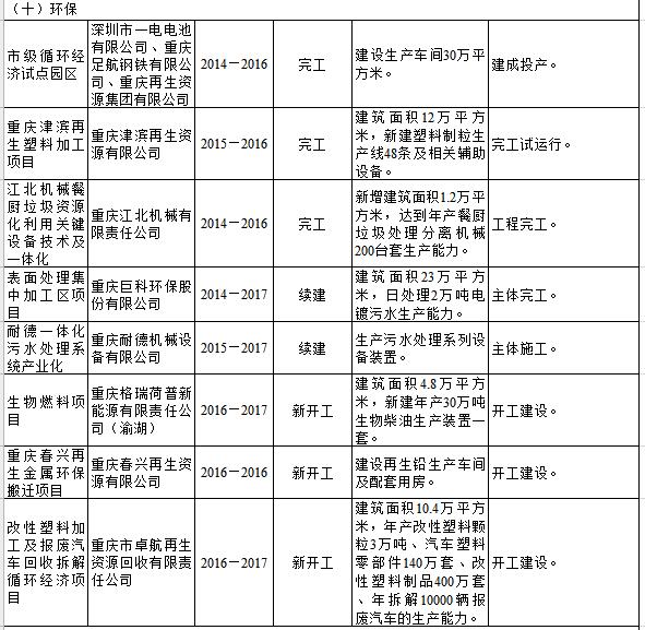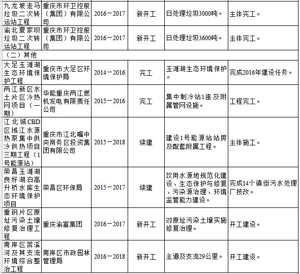 近日,從重慶市發改委獲悉,重慶市2016年市級重點項目名單已經發布。據悉,重慶市2016年市級重點項目包括兩部分即重慶市2016年重大前期項目和重慶市2016年重點建設項目,涉及環境治理、污水處理、垃圾焚燒等多個節能環保項目。具體內容如下: