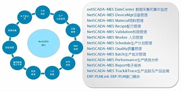 圖為“海得NetSCADA MES系統”及相關解決方案涉及的諸多功能模塊