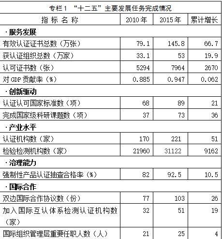——服務發展成效顯著。“十二五”時期,認證認可、檢驗檢測全面服務經濟社會發展各個領域,截至2015年末,共頒發各類有效認證證書145.8萬張,對外出具檢驗檢測報告3.29億份。保障質量安全更加有效,強化了強制性產品認證事中事后監管,強制性產品認證抽查合格率由2010年的82%提高到2015年的92.5%,將水產品、肉類、乳品境外生產企業納入進口注冊管理,提升了進口食品安全保障能力。服務轉型升級提質增效更加有力,共授權設立了206家國家產品質檢中心,批準上海靜安、蘇州吳中等6地創建國家公共檢驗檢測服務平臺示范區,浙江制造、深圳標準等產品認證制度成為推動地方經濟轉型升級的重要平臺。助推生態文明建設更加扎實,新增低碳產品、能源管理體系等認證服務,獲證節能、節水等資源節約型產品逐年遞增,“十二五”期間獲證產品共節約或替代電能6890.91億千瓦時,節約水資源1545.17億噸。推動將有機產業發展狀況納入生態文明建設評價體系,全國共54家縣區獲批為有機產品認證示范創建區,植物類有機產品生產面積達197.5萬公頃。建立實施了知識產權、保健服務、非金融機構支付、移動金融等新型服務認證,促進了現代服務業發展。