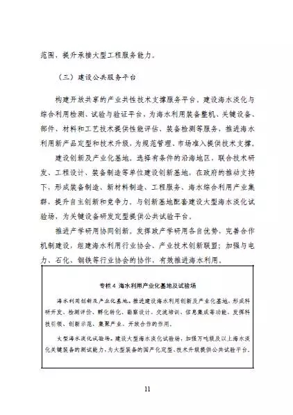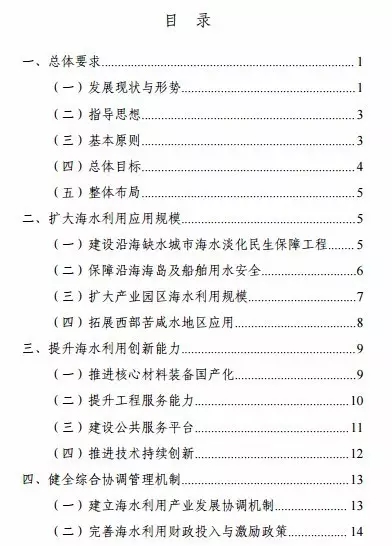 規(guī)劃明確整體布局,結(jié)合沿海地區(qū)海水利用產(chǎn)業(yè)基礎(chǔ),引導(dǎo)研發(fā)、設(shè)計(jì)、制造、施工、測(cè)試、運(yùn)維等海水利用上下游相關(guān)機(jī)構(gòu)集聚發(fā)展,形成實(shí)驗(yàn)室、工程中心、平臺(tái)、基地、企業(yè)等統(tǒng)籌聯(lián)動(dòng)的協(xié)同創(chuàng)新體系,支撐海水利用規(guī)模化應(yīng)用。推進(jìn)沿海缺水城市、海島、產(chǎn)業(yè)園區(qū)海水利用規(guī)模化應(yīng)用,推動(dòng)海水利用技術(shù)應(yīng)用于西部苦咸水地區(qū),促進(jìn)海水利用走進(jìn)“一帶一路”沿線國家,最終形成城市保障、海島示范、園區(qū)率先、行業(yè)深化、苦咸水拓展、“一帶一路”延伸的新格局。