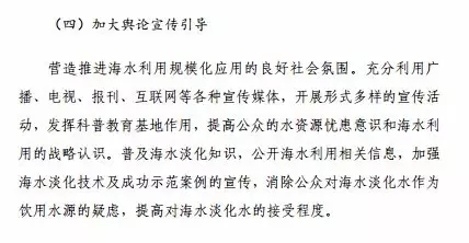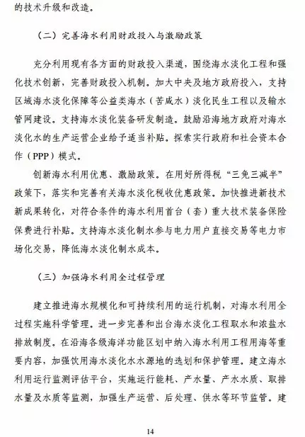 導(dǎo)讀:發(fā)改委、海洋局組織編制并印發(fā)《全國海水利用“十三五”規(guī)劃》提出,到2020年海水利用實(shí)現(xiàn)規(guī)模化應(yīng)用,最終形成城市保障、海島示范、園區(qū)率先、行業(yè)深化、苦咸水拓展、“一帶一路”延伸的新格局。同時(shí),探索實(shí)行政府和社會(huì)資本合作(PPP)模式。