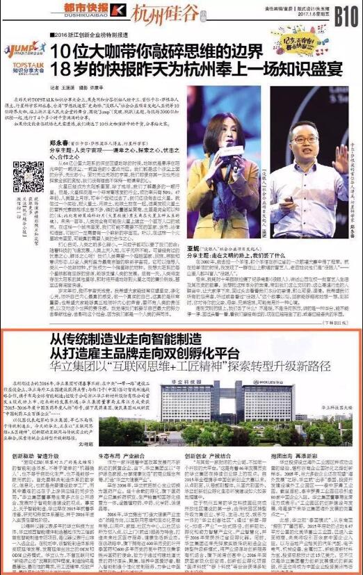 日前,在權(quán)威媒體評選的2016浙江創(chuàng)新企業(yè)榜上,華立集團榮膺“浙江制造杰出企業(yè)”。標志著以“互聯(lián)網(wǎng)思維+工匠精神”創(chuàng)新驅(qū)動轉(zhuǎn)型升級新路徑的模式獲得社會認可。