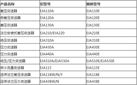 此次橫河川儀停止銷(xiāo)售EJA-A系列差壓(壓力)產(chǎn)品及其未來(lái)替代型號(hào),如下表所示: