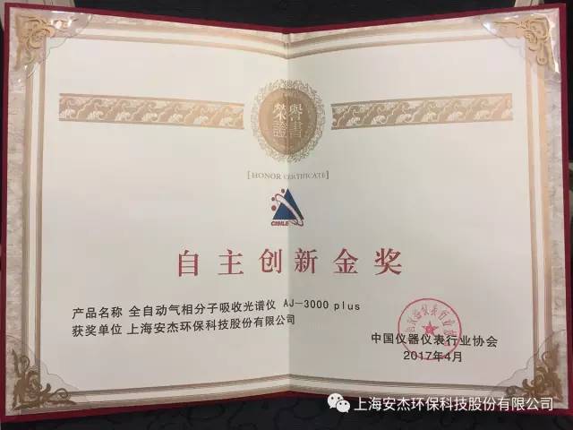 在此次595家參展廠商中,共評選出10個產品成為CISILE 2017自主創新獎得主,安杰科技的AJ-3000 plus氣相分子吸收光譜儀脫穎而出,斬獲金獎!