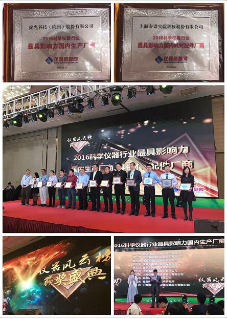 24日晚上,ACCSI 2017如期舉辦了“儀器風云榜頒獎盛典”。在這一科學儀器年度重頭戲中,聚光科技連續第七年榮獲“2016科學儀器行業最具影響力國內生產廠商”獎項,聚光科技下屬子公司安譜實驗也是連續第五年獲得“2016科學儀器行業最具影響力國內耗材配件廠商”獎項。憑借這兩個ACCSI2017的核心獎項,聚光科技在中國科學儀器行業的“達沃斯論壇”上再次大放異彩。兩項大獎,是從儀器信息網的千余家參展商中,根據廠商的銷售收入、人員規模、研發實力以及用戶對廠家的關注程度,綜合數據分析后得出的客觀結果,是對聚光科技在過去的一年中所獲得的市場佳績、所承擔的行業責任、所取得的行業地位等類別的綜合肯定,是對聚光科技綜合實力的褒獎。