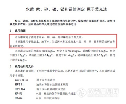 水質(zhì) 汞、砷、硒、鉍和銻的測(cè)定 原子熒光法 |