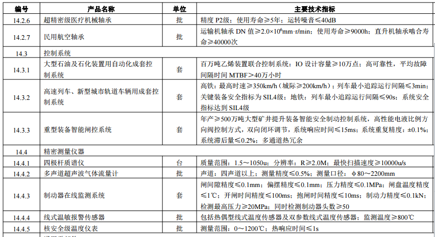 工信部2018年1月26日印發(fā)《關(guān)于印發(fā)<首臺(套)重大技術(shù)裝備推廣應(yīng)用指導(dǎo)目錄(2017年版)>的通告》(工信部裝函[2018]47號)。目錄包括清潔高效發(fā)電裝備,超、特高壓輸變電裝備,大型石油、石化及煤化工成套裝備,大型冶金、礦山裝備及港口機械,軌道交通裝備,大型環(huán)保及資源綜合利用裝備,大型施工機械,新型輕工機械,民用航空裝備,高技術(shù)傳播及還海洋工程裝備,成形加工設(shè)備,新型、大馬力農(nóng)業(yè)裝備,電子及醫(yī)療專用裝備,重大技術(shù)裝備關(guān)鍵配套基礎(chǔ)件等共十四大類。