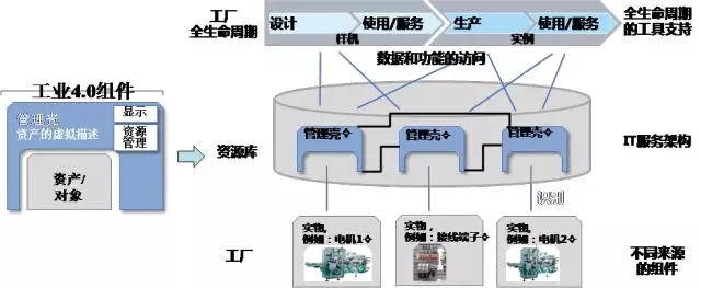 圖5 工業(yè)4.0組件及基于工業(yè)4.0組件的工廠資產(chǎn)建模