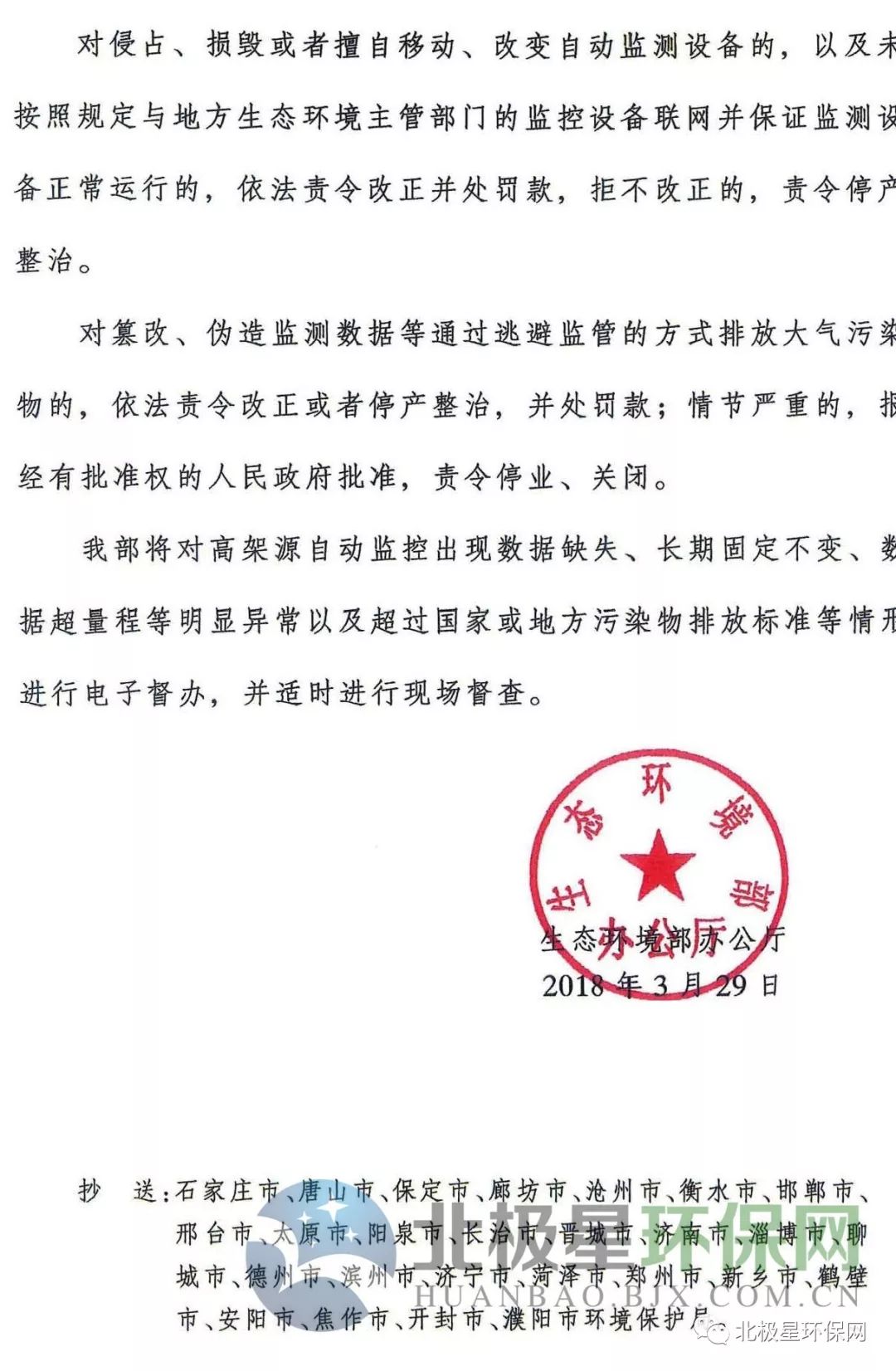 北極星環(huán)保網(wǎng)獲悉,生態(tài)環(huán)境部印發(fā)《關(guān)于加強京津冀及周邊地區(qū)“2+26”城市高架源自動監(jiān)控管理的通知》。通知稱,近期京津冀及周邊地區(qū)“2+26”城市的高架源自動監(jiān)控頻繁出現(xiàn)數(shù)據(jù)缺失或長期掉線等問題,對區(qū)域大氣污染防控和環(huán)境監(jiān)管產(chǎn)生不利影響。