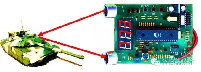 空氣超聲探頭發射超聲脈沖,到達被測物時,被反射回來,并被另一只空氣超聲探頭所接收。測出從發射超聲波脈沖到接收超聲波脈沖所需的時間t,再乘以空氣的聲速(340m/s),就是超聲脈沖在被測距離所經歷的路程,除以2就得到距離。