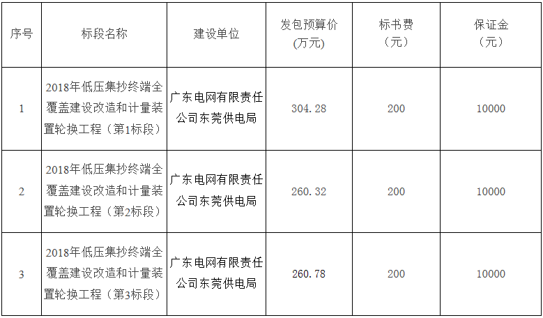本招標項目2018年低壓集抄終端全覆蓋建設改造和計量裝置輪換工程已由廣東電網有限責任公司以廣電市[2017]78號批準建設,項目建設單位為廣東電網有限責任公司東莞供電局,建設資金為省公司資金,招標人為廣東電網有限責任公司東莞供電局,招標代理單位為廣東電網物資有限公司。項目已具備招標條件,現對該項目進行公開招標。