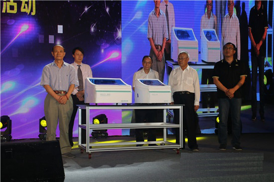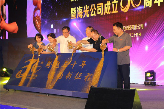 本次慶祝活動上,海光公司隆重發布HGAF-900系列原子熒光光度計、HGCF系列全自動連續流動分析儀兩款分析儀器。清華大學鄧勃教授、地礦部物探研究所張錦茂研究員、海光公司第四任總經理劉明鐘、中國儀器儀表學會分析儀器分會榮譽理事長閆成德、原地礦部科技司周金生處長、中國儀器儀表學會常務副秘書長張彤、中國儀器儀表行業協會專職副理事長李躍光、中國環境監測總站齊文啟研究員、海光公司原子熒光事業部經理梁敬、海光公司流動分析事業部經理宮博共10位嘉賓為新品揭幕。