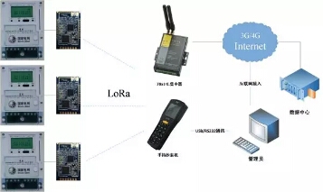 抄表系統由無線集中器和無線電表(內嵌LoRa模塊)組成,集中器通過3G/4G無線網絡接入Internet,將電表數據傳輸到數據中心。另可支持抄表人員,進行手持終端的巡檢抄表。方便維護管理。