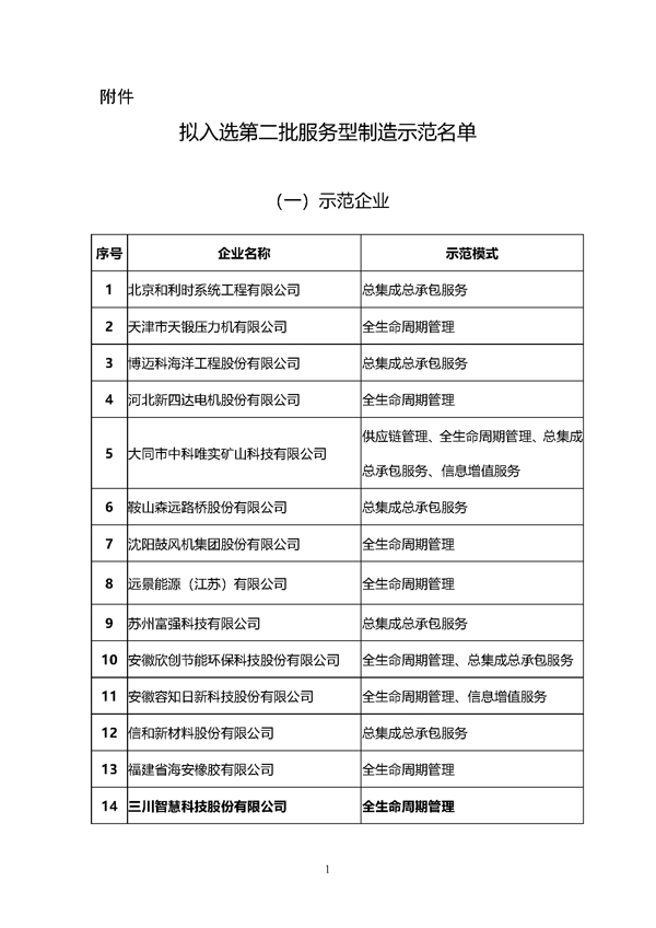 9月19日,根據(jù)《工業(yè)和信息化部辦公廳關(guān)于開(kāi)展第二批服務(wù)型制造示范遴選工作的通知》(工信廳產(chǎn)業(yè)函〔2018〕145號(hào)),工信部官網(wǎng)公示第二批服務(wù)型制造示范名單,北京和利時(shí)系統(tǒng)工程有限公司以“總集成總承包服務(wù)”、三川智慧科技股份有限公司以“全生命周期管理”示范模式成功入圍。