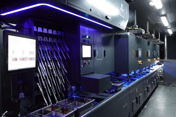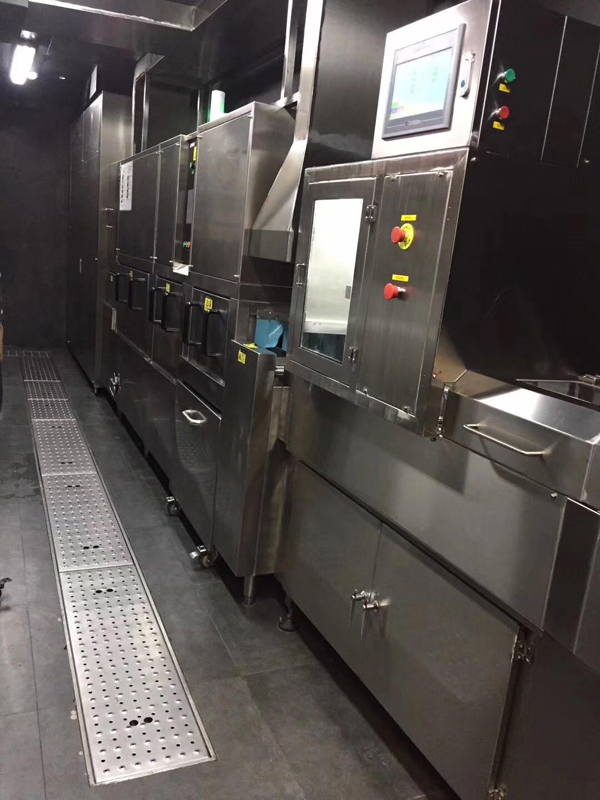 在海底撈首家智慧餐廳中,除了自動(dòng)配鍋機(jī)以外,和利時(shí)還為海底撈提供了一條全自動(dòng)無(wú)人清洗線(xiàn),這在海底撈全球現(xiàn)有的300多家門(mén)店中也屬首次嘗試。全自動(dòng)清洗線(xiàn)實(shí)現(xiàn)了從臟鍋入口開(kāi)始,到自動(dòng)清洗、檢測(cè)、鍋型識(shí)別、分類(lèi)入庫(kù)、紫外線(xiàn)消毒、按訂單出庫(kù)等全流程自動(dòng)化,無(wú)需人為干預(yù)。全自動(dòng)無(wú)人清洗線(xiàn)大大提高了洗鍋出鍋效率,減少了后廚人員,保證了鍋具衛(wèi)生滿(mǎn)足食品安全要求。