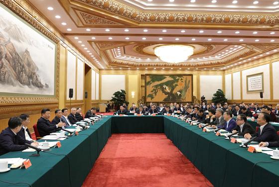 丁薛祥、劉鶴、胡春華、黃坤明、尤權、何立峰出席座談會。