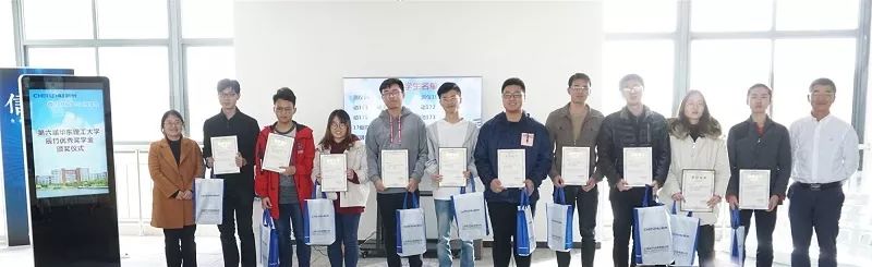 圖為2018年第六屆華理獎(jiǎng)學(xué)金獲得者合影留念