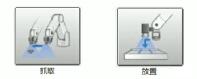 2所示為兩種運(yùn)動(dòng)相機(jī)模式,即相機(jī)安裝于機(jī)械臂頂端隨機(jī)械臂一同運(yùn)動(dòng)。雖不同于上述固定相機(jī)模式,但固定相機(jī)模式和運(yùn)動(dòng)相機(jī)模式在功能上殊途同歸,都可實(shí)現(xiàn)定位抓取與引導(dǎo)放置。兩者在保證功能的同時(shí),能夠提供更多的安裝可能性以應(yīng)對(duì)不同的環(huán)境與硬件條件限制。