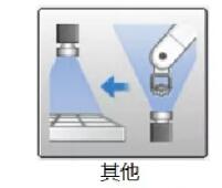 1所示的三種工作方式稱為固定相機(jī)模式,即相機(jī)安裝在設(shè)備機(jī)架上,不隨機(jī)器人的運(yùn)動(dòng)而運(yùn)動(dòng),自左至右又依次分為抓取工況、抓取偏移糾正工況和放置工況。其中抓取工況,相機(jī)對(duì)傳送過(guò)來(lái)的來(lái)料進(jìn)行拍攝和粗定位,將定位信息傳輸給機(jī)器人以便機(jī)器人根據(jù)定位信息抓取來(lái)料,如此可降低對(duì)工位間傳送機(jī)構(gòu)準(zhǔn)確性的要求,確保抓取的穩(wěn)定性;抓取偏移補(bǔ)正工況可通過(guò)設(shè)置在機(jī)械臂另一側(cè)的下相機(jī)對(duì)工件進(jìn)行二次精準(zhǔn)定位,極大程度上消除來(lái)料偏差,確保能有針對(duì)性地對(duì)每個(gè)來(lái)料進(jìn)行加工;放置工況內(nèi)容涵蓋廣泛,可以是簡(jiǎn)單的放置,亦可以是貼合、安裝等,即使用相機(jī)定位最終的目標(biāo)位,結(jié)合前述兩種工況,真正做到針對(duì)每個(gè)工件有的放矢。