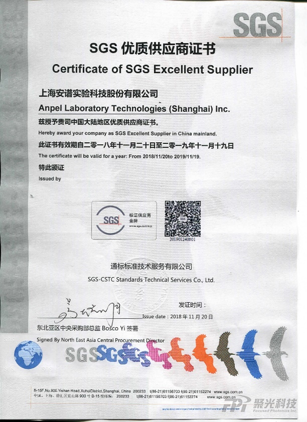 聚光科技(杭州)股份有限公司(以下簡(jiǎn)稱(chēng)“聚光科技”)下屬子公司上海安譜實(shí)驗(yàn)科技股份有限公司(以下簡(jiǎn)稱(chēng)“安譜實(shí)驗(yàn)”)又獲得SGS優(yōu)質(zhì)供應(yīng)商證書(shū)了!