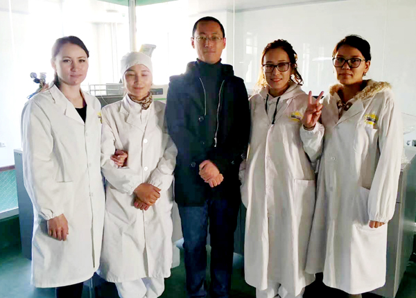 海光工程師徐明與哈薩克斯坦金駱駝公司檢測(cè)人員在儀器前合影