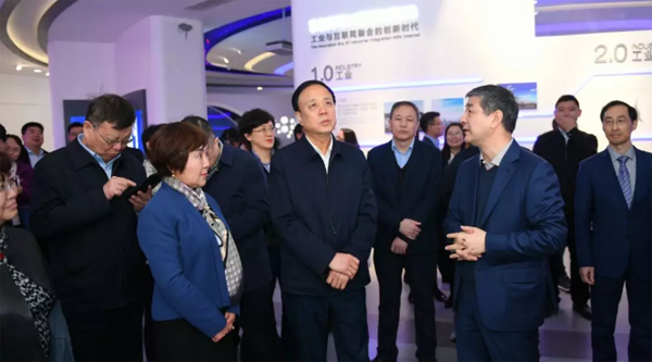 在科遠股份董事長劉國耀,九三學社社員、科遠股份總裁胡歙眉等的陪同下,武維華主席一行首先參觀了科遠股份智慧產業展示廳,深入了解了科遠股份發展歷程、自主創新情況以及在智慧產業的完善布局。