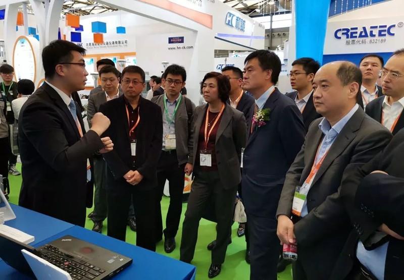 北控集團黨委副書記、副董事長、總經理侯子波及相關領導來到京儀集團展臺指導工作,京儀集團總經理秦海波,副總經理李源、盧繼偉,總工程師董建偉以及相關部門、企業負責人一同參觀。