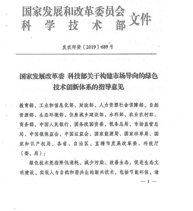 國家發展改革委 科技部關于構建市場導向的綠色技術創
