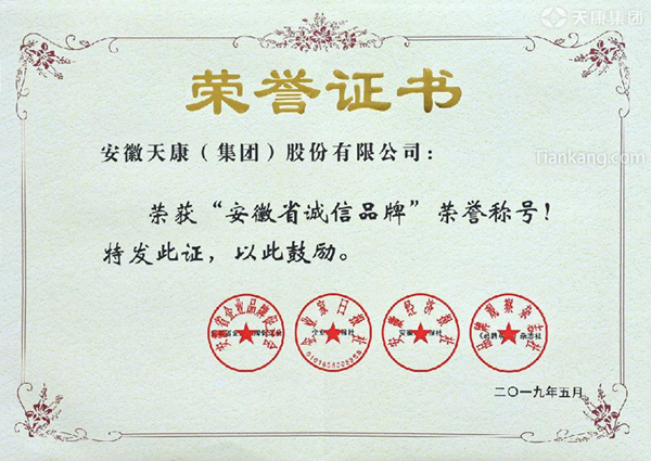 此次安徽天康集團被授予“安徽省誠信品牌”榮譽稱號,是對天康集團發展踐行誠信理念取得一定成績的肯定,對天康集團在行業內樹立誠信榜樣、建立誠信典型的贊同,更是對天康集團在未來發展中的激勵和鞭策。