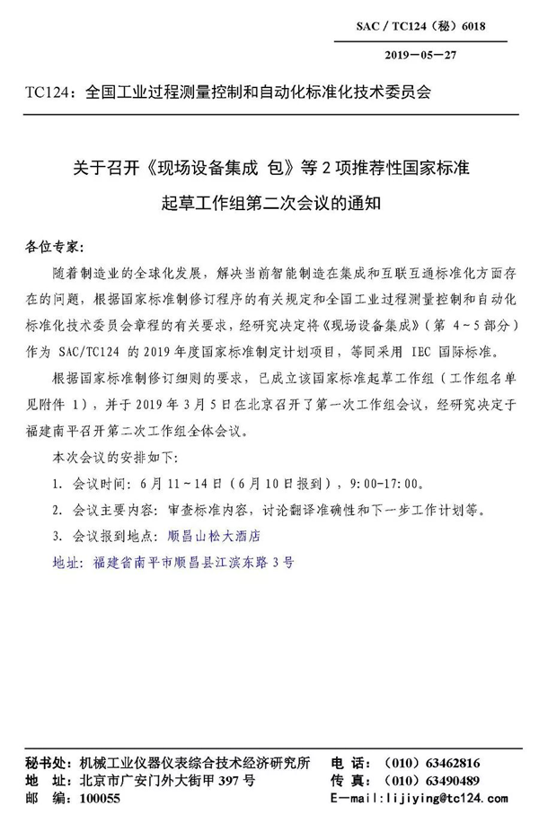 2019年6月11日-14日,由全國工業(yè)過程測(cè)量控制和自動(dòng)化標(biāo)準(zhǔn)化技術(shù)委員會(huì)發(fā)起的《現(xiàn)場(chǎng)設(shè)備集成》(第 4~5部分《現(xiàn)場(chǎng)設(shè)備集成包》和《現(xiàn)場(chǎng)設(shè)備集成信息模型》)等兩項(xiàng)國家智能制造標(biāo)準(zhǔn)第二次會(huì)議在福建順昌虹潤(rùn)公司隆重召開,其中《現(xiàn)場(chǎng)設(shè)備集成包》一項(xiàng)標(biāo)準(zhǔn)由虹潤(rùn)公司主持起草制定。