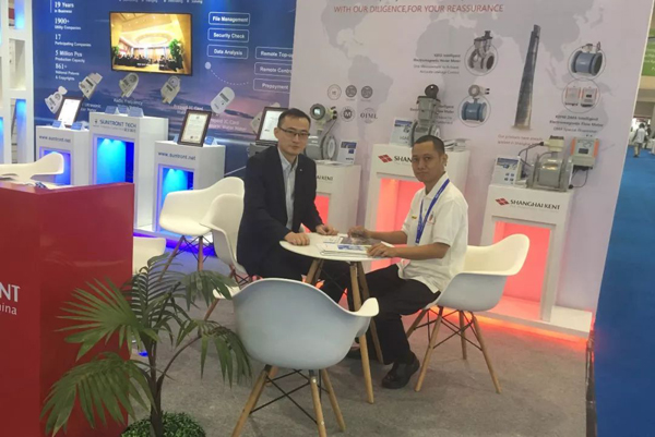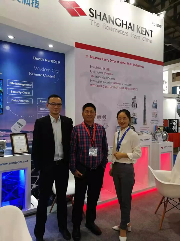 展會期間,展臺上展示的包括電磁水表、電磁流量計在內的眾多國內熱銷產品,吸引了眾多外賓駐足交流。參展人員耐心就電磁水表和電磁流量計的工作原理和性能給客戶進行講解,直觀地展示了上海肯特產品的特點與優勢,更是給用戶留下深刻印象。