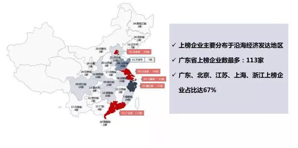 根據(jù)榜單分析,專利500強(qiáng)企業(yè)分布于28個省級行政地區(qū),超過70%的專利五百強(qiáng)企業(yè)位于沿海經(jīng)濟(jì)發(fā)達(dá)地區(qū)。其中入圍企業(yè)數(shù)量最多的五個省市,廣東省、北京市、江蘇省、上海市和浙江省共入圍334家企業(yè),占比達(dá)67%,這五個地區(qū)的專利申請總量和2018年專利運(yùn)營總量均排名前列。
