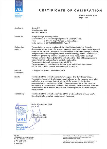 此次校準證書的取得,充分證明了國際權威檢測機構對我司高壓計量設備檢定裝置的認可,也證明了公司高壓檢測技術在國際上的領先地位,為公司高壓計量產品走向國際市場創(chuàng)造了有利條件。