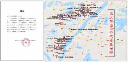 軍運會期間,武漢經濟開發區監測區域內PM2.5數值同期下降20.3%、PM10數值同期下降20.9%、SO2數值同期下降14.6%、NO2數值同期下降4.5%。雪迪龍服務工程師和現場工作人員始終保持手機7*24小時待命,即使是凌晨也安排專人值班確保儀器正確運行,確保“軍運藍”,工作成果受到了武漢經濟技術開發區(漢南區)環境保護局的嘉獎。