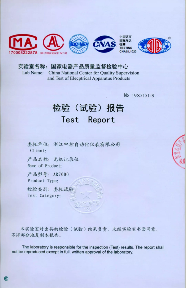 在整個(gè)試驗(yàn)過程中,中控AR7000系列無紙記錄儀全程保持正常運(yùn)行,數(shù)據(jù)記錄連續(xù)完整,實(shí)現(xiàn)了核電標(biāo)準(zhǔn)EMC鑒定試驗(yàn)的一次性通過,并出具了正式檢驗(yàn)報(bào)告。