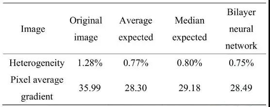 隨著科技的發(fā)展,紅外熱像技術(shù)的運用也更加廣泛,被測物體以及檢測環(huán)境的復(fù)雜程度也越來越高,基于標(biāo)定的校正方法已經(jīng)逐漸跟不上發(fā)展的需求了。而國內(nèi)外的學(xué)者也逐步投入更多精力在基于場景的非均勻校正方法的研究上,早在20世紀(jì)90年代,美國海軍研究實驗室的D.A.Scribner等人提出了基于神經(jīng)網(wǎng)絡(luò)的場景非均勻校正算法。王嫻雅等人通過分析了傳統(tǒng)的周期性神經(jīng)網(wǎng)絡(luò)自適應(yīng)非均勻校正方法在采用局部領(lǐng)域數(shù)據(jù)估計輸出期望時其精度不夠,從而提出一種利用當(dāng)前像素領(lǐng)域和讀出通道估計輸出期望值的方法。該方法可有效抑制焦平面固定圖案噪音,提高被測目標(biāo)的分辨率。在優(yōu)化單層所使用的期望函數(shù)上,B.Chen等人提出雙層學(xué)習(xí)神經(jīng)網(wǎng)絡(luò)算法,在不同的神經(jīng)網(wǎng)絡(luò)層使用不同的期望函數(shù),雙層神經(jīng)網(wǎng)絡(luò)之間優(yōu)勢互補,同時具備非均勻性校正效果和改善圖像清晰度,獲得了更高質(zhì)量的紅外圖像,該算法與其他改進BP神經(jīng)網(wǎng)絡(luò)算法比較結(jié)果如表1所示。