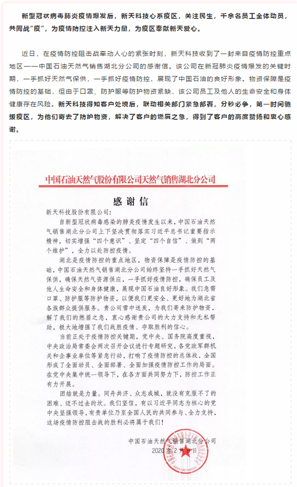 新天科技榮獲高度贊譽(yù)!一封感謝信,濃厚攻堅(jiān)情
