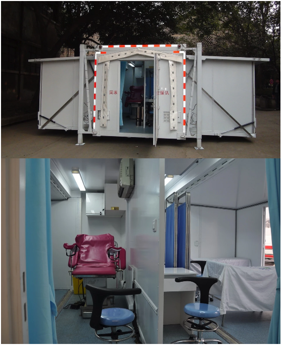 綜合門診車,采用雙側(cè)擴展方艙,展開后就是兩個功能齊全的門診室,就可以就地接診病人了。