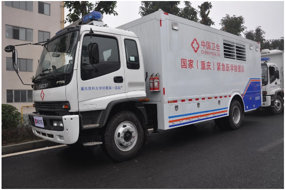 2020年2月4日18時57分,重慶第四批援鄂醫(yī)療隊出征,其中不僅包括重慶醫(yī)科大學附屬第一醫(yī)院的15名醫(yī)護人員作為國家緊急醫(yī)學救援隊成員集結(jié)出征,還有4臺“變形金剛”式的醫(yī)療設(shè)備車輛一起出發(fā)。這4臺車分別為普通門診車,醫(yī)學檢驗車,油電車、藥械車,從門診、檢驗、拿藥到油電補給,這4輛醫(yī)療設(shè)備車輛就像是一個“移動門診部”。這次抵達湖北后,將與重慶市衛(wèi)健委增援的其他設(shè)備車輛組成一個“移動”的“二級甲等醫(yī)院”,助力湖北抗擊疫情。