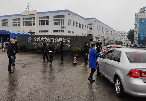 (寧波水表公司高層參與志愿者行動為進廠員工測量體溫)
