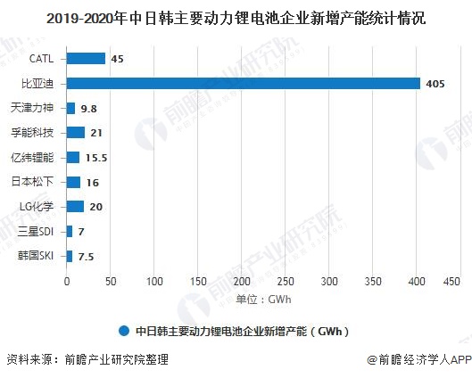2019-2020年中日韓主要動力鋰電池企業新增產能統計情況