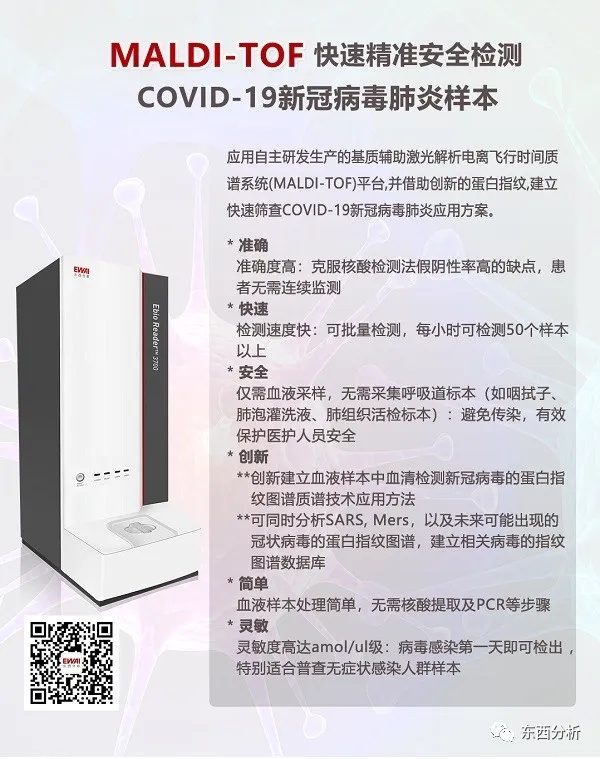 隨后,付兆庚一行專門聽取了公司生命科學團隊負責人對Ebio Reader 3700 飛行時間質譜系統(tǒng)在新冠病毒肺炎檢測應用的匯報。當聽到我公司借助自主研發(fā)、生產的飛行時間質譜系統(tǒng),并利用創(chuàng)新的蛋白指紋圖譜在COVID-19檢測中取得令人鼓舞的成果時,付兆庚區(qū)長非常高興,稱贊東西分析作為門頭溝區(qū)的金牌企業(yè),多年來除了嚴把產品質量關, 同時也在新的領域加大創(chuàng)新力度。這次能在抗擊疫情的戰(zhàn)役中,第一時間做出迅速的反應,并取得令人振奮的成績,不僅顯示出東西分析多年的技術實力,更證明了東西分析高度的社會責任感。