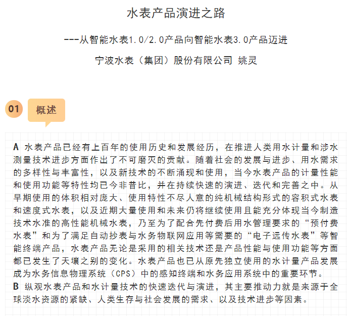 核心閱讀:寧波水表(集團)股份有限公司是中國儀器儀表行業(yè)協(xié)會行業(yè)協(xié)會副理事長單位,是一家具有六十余年歷史的水計量行業(yè)領(lǐng)軍企業(yè),隨著科學技術(shù)的發(fā)展,公司率先啟動智能水表的商用研究。本文介紹一下寧波水表(集團)股份有限公司和智能水表3.0產(chǎn)品(管網(wǎng)參數(shù)綜合采集中心專題)的詳細情況。