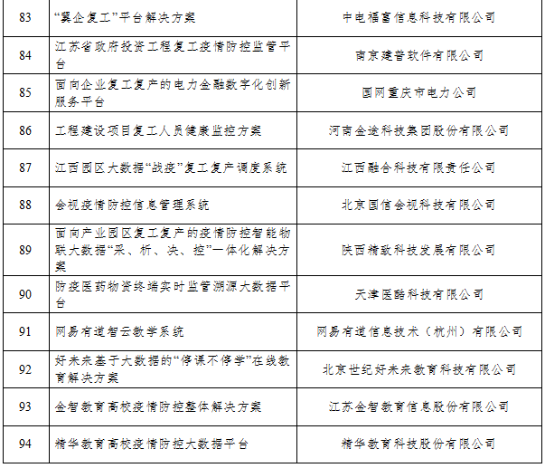 附件:疫情防控和復(fù)工復(fù)產(chǎn)復(fù)課大數(shù)據(jù)產(chǎn)品和解決方案名單