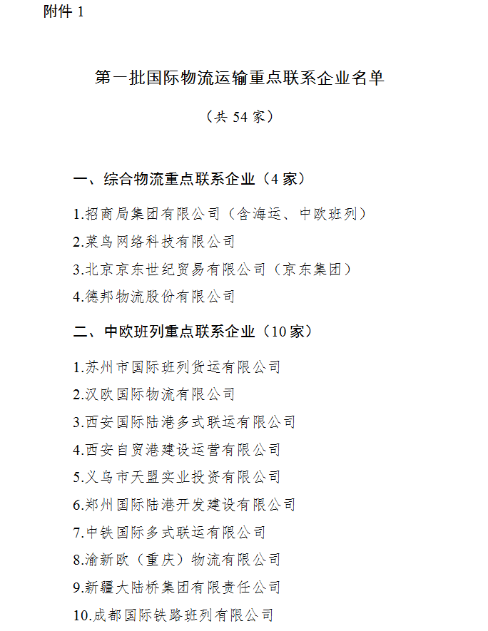 附件:1.第一批國際物流運(yùn)輸重點(diǎn)聯(lián)系企業(yè)名單.doc