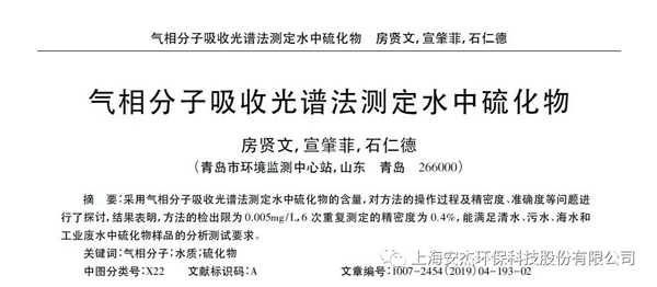 工業(yè)廢水中的氨氮,硫化物的含量非常高,且伴隨了色度,濁度等其他指標的影響。在檢測過程中對實驗室操作人員非常不友好。已經(jīng)有相關的文獻報道測量工業(yè)廢水中利用氣相分子吸收光譜法來測定氨氮以及硫化物。與分光光度法進行對比, 氣相分子吸收光譜法具有簡便快速、測量準確等優(yōu)點。