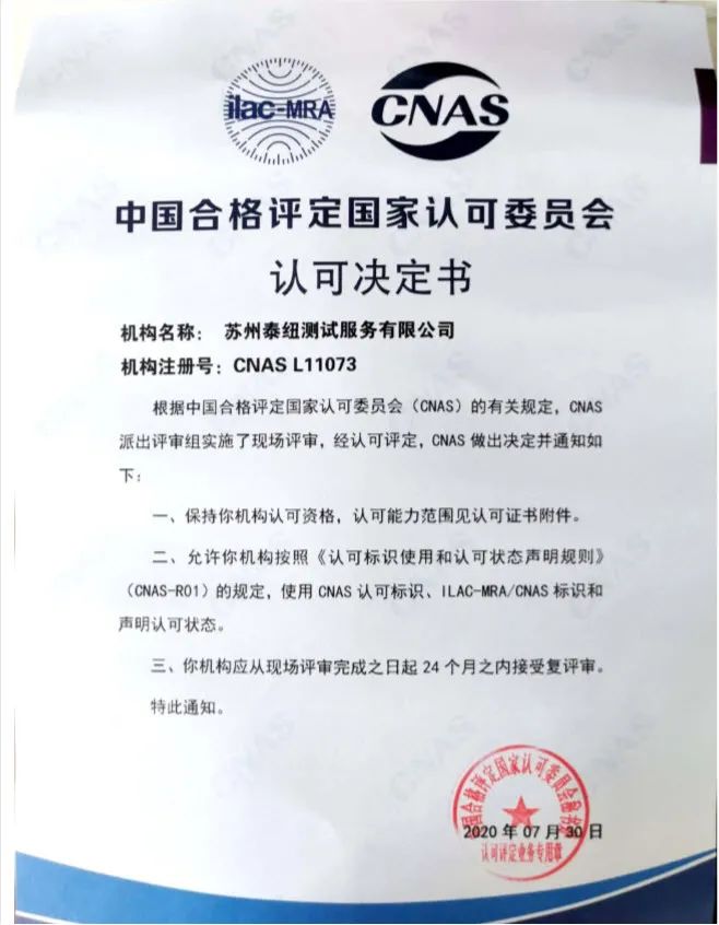 泰紐測試將嚴(yán)格執(zhí)行CNAS實(shí)驗(yàn)室認(rèn)可的相關(guān)要求,更加規(guī)范和完善實(shí)驗(yàn)室體系建設(shè),促進(jìn)公司健康有序發(fā)展,以更優(yōu)的質(zhì)量、更高的標(biāo)準(zhǔn)為客戶提供科研服務(wù)。