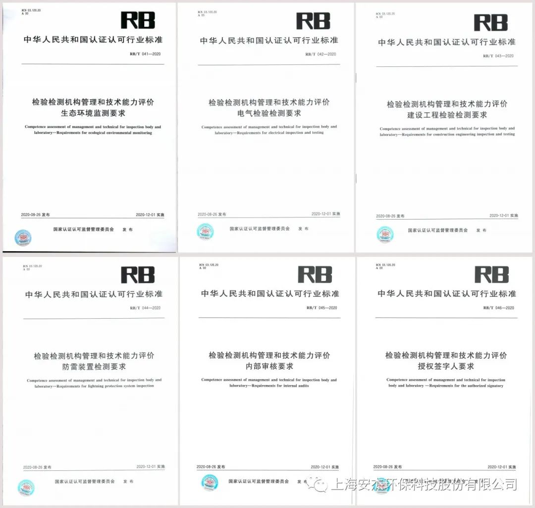 2020年9月4日,國家認證認可監督管理委員會發布《2020年第21號 認監委關于發布2020年第一批認證認可行業標準的公告》,《RB/T 041-2020 檢驗檢測機構管理和技術能力評價 生態環境監測要求》、《RB/T 042-2020 檢驗檢測機構管理和技術能力評價 電氣檢驗檢測要求》、《RB/T 043-2020 檢驗檢測機構管理和技術能力評價 建設工程檢驗檢測要求》、《RB/T 044-2020 檢驗檢測機構管理和技術能力評價 防雷裝置檢測要求》、《RB/T 045-2020 檢驗檢測機構管理和技術能力評價 內部審核要求》、《RB/T 046-2020 檢驗檢測機構管理和技術能力評價 授權簽字人要求》獲得批準發布。